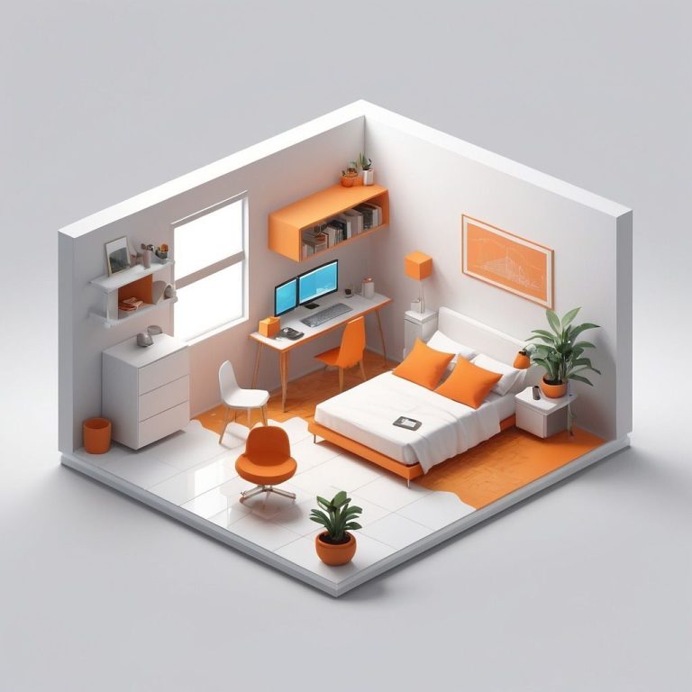 رنگبندی این اتاق بر اساس ترکیب سفید و نارنجی انجام شده است که به ایجاد تعادل بین تمیزی و انرژی کمک میکند. سفید به عنوان رنگ غالب، حس گستردگی و روشنایی را ایجاد میکند، در حالی که نارنجی به عنوان رنگ تأکید، جنبههای زنده و خلاقانه فضا را برجسته میسازد. این ترکیب هم از نظر بصری جذاب و هم از نظر روانی انگیزشبخش است.